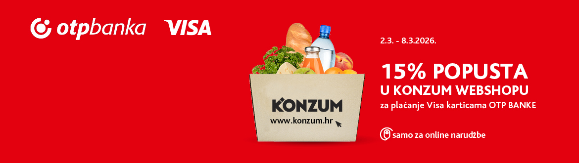 Iskoristite posebnu pogodnost u Konzum webshopu od 2.3. do 8.3.2026. za plaćanje Visa karticama OTP banke
