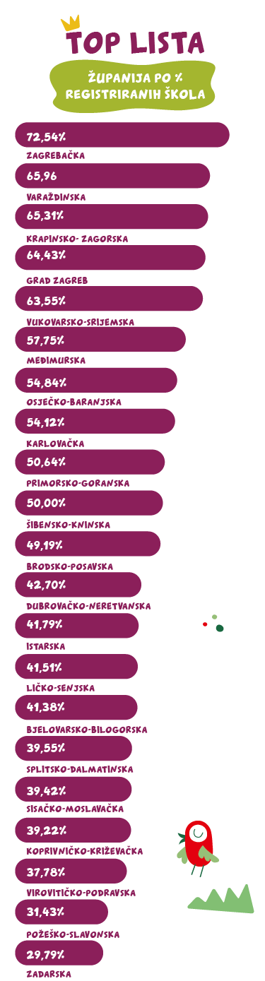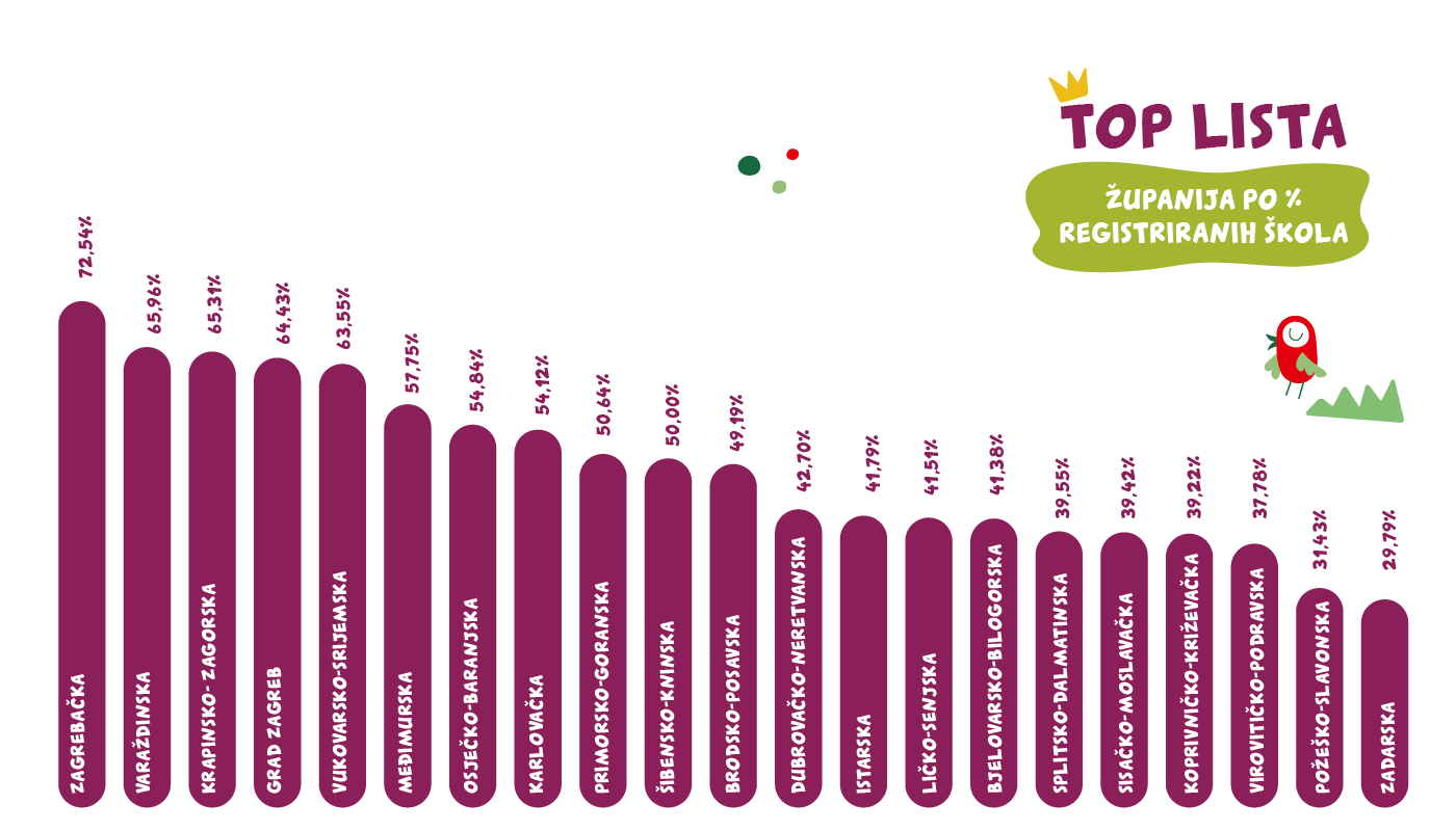 Svaki tjedan provjeri koliko škola se registriralo po županiji, jer samo registrirane škole mogu zamijeniti kupone za vrijednu opremu!