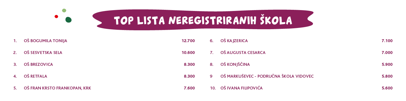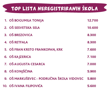Također provjeri TOP listu registriranih i neregistriranih škola s najviše kupona.