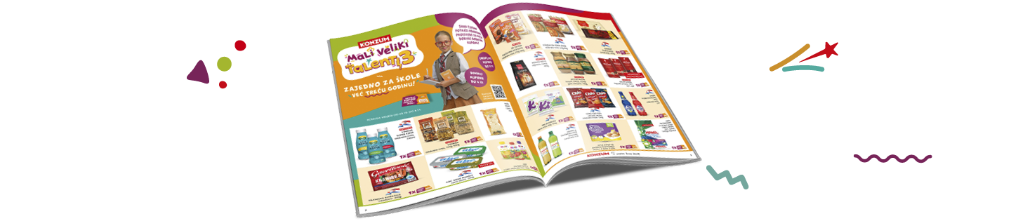 Od 3.9. do 11.11.2025. za svakih potrošenih 10 eura i/ili za kupnju odabranih proizvoda u svim Konzum prodavaonicama dobivaš JEDAN kupon Mali veliki talenti 3.