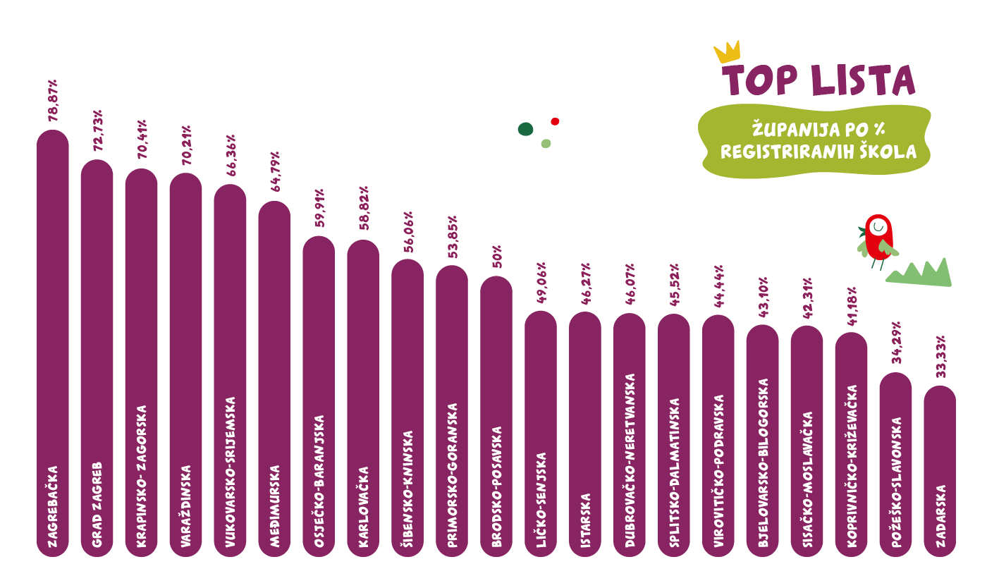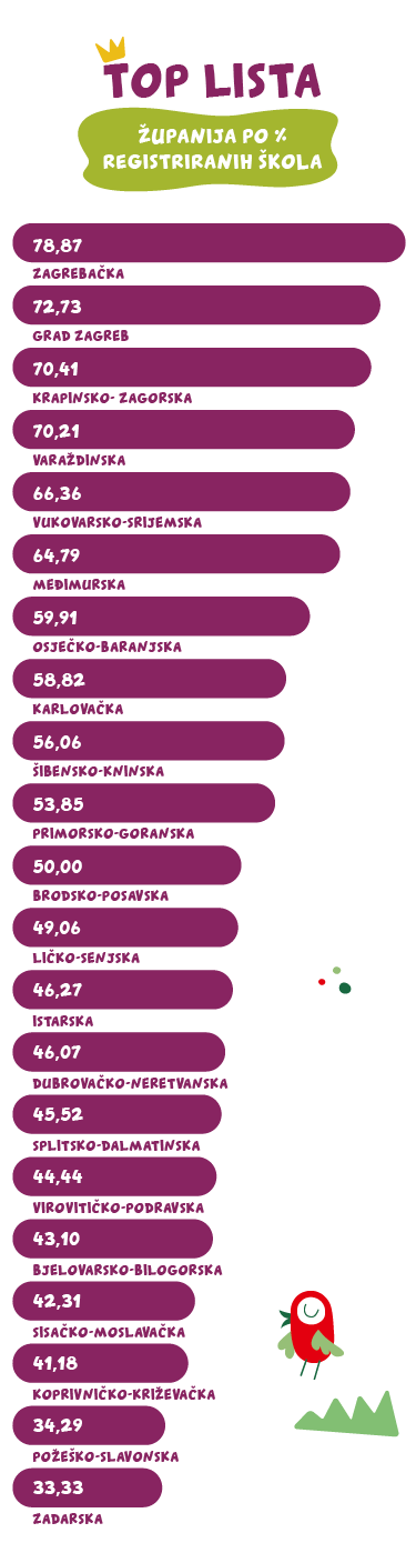 Svaki tjedan provjeri koliko škola se registriralo po županiji, jer samo registrirane škole mogu zamijeniti kupone za vrijednu opremu!