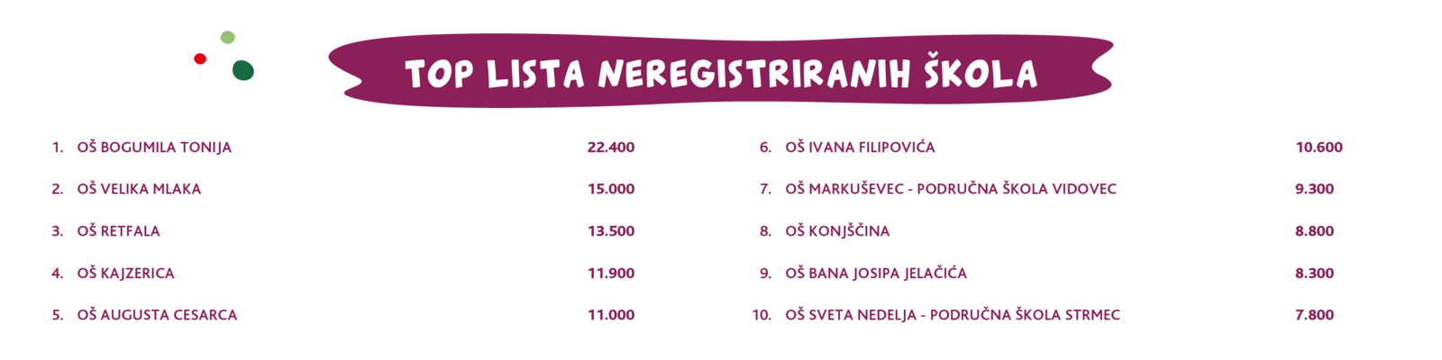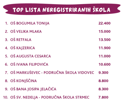 Također provjeri TOP listu registriranih i neregistriranih škola s najviše kupona.