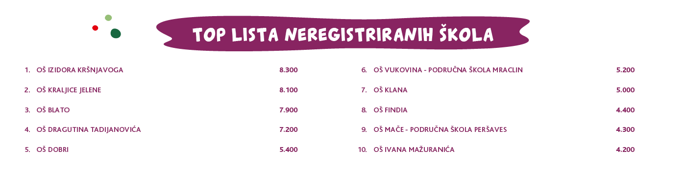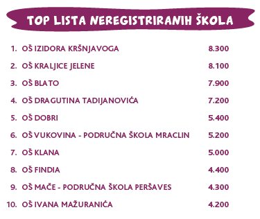 Provjeri TOP listu registriranih i neregistriranih škola s najviše kupona.