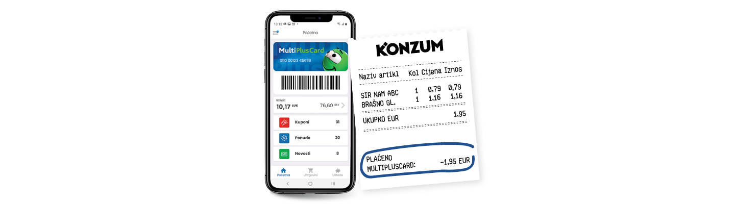 Proizvode označene MultiPlusCard cijenom pronađi u Konzum prodavaonici ili u našem webshopu*, a pri kupnji samo obavezno koristi svoju MultiPlusCard karticu i UŠTEDI ODMAH!