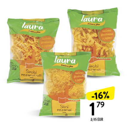 Tjestenina je ručno rađena od svježih domaćih jaja, pšenične krupice sa slavonskih polja te bez dodataka aditiva.