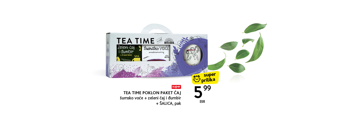 a predvečer uživajte u voćnim notama šumskog čaja. Čajevi će vas zagrijati i oraspoložiti,a šalica koja se dobije u paketu užitak