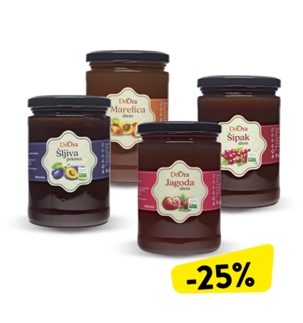 Uživajte uz DoOra džemove i pekmet koji će obogati Vaša jela, kolače, palačinke ili jednostavno doručak.
