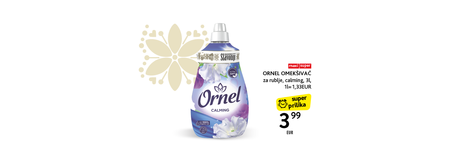 U ovoj liniji posebno se ističe Ornel Calming koja očarava ženstvenim cvjetnim bouguetom ruže, geranija i ljubičica.