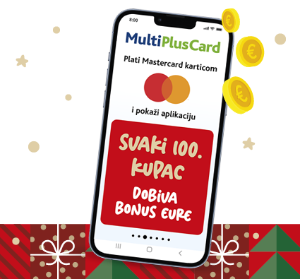 povrat ukupnog iznosa kupnje u BONUS eurima u MultiPlus mobilnoj aplikaciji.