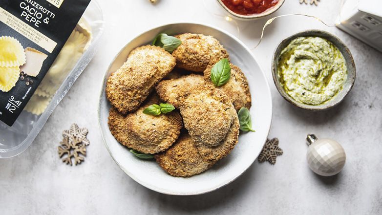 Posložite panirane panzerotte na pleh, lagano ih prelijte ili poprskajte maslinovim uljem.