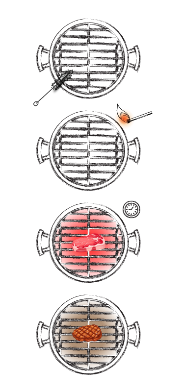 1. KLASIČNI - izjednačena toplina po cijeloj rešetki. Idealan način za grilanje povrća, morskih plodova, nemasne govedine i svinjskog filea.