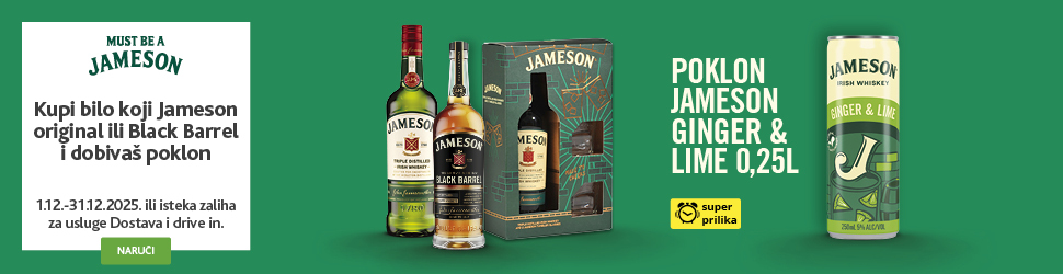 Jameson Irish Whiskey 0,7 l Cijena za j.m.: 34,27 €/l Cijena 02.05.2025.: 23,05 €/kom (2) 23 99 €/kom kom