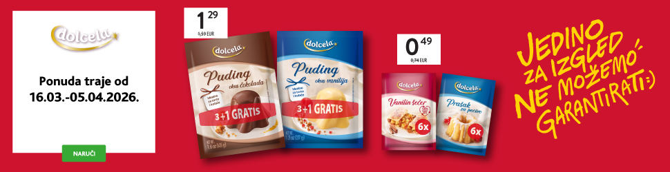 Dolcela Premium Puding nougat 48 g Cijena za j.m.: 20,62 €/kg Cijena 02.05.2025.: 0,99 €/kom (0) 0 99 €/kom kom