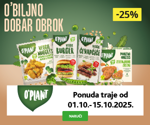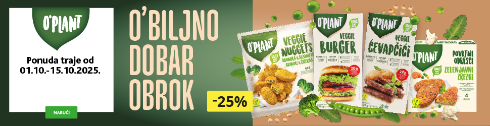 AKCIJA -25% ! O'Plant Veggie Ćevapčići 200 g Cijena za j.m.: 22,45 €/kg NC 30 dana: 5,99 €/kom Vrijedi do: 15.10.2025 Cijena 02.05.2025.: 5,99 €/kom (1) 4 49 €/kom kom