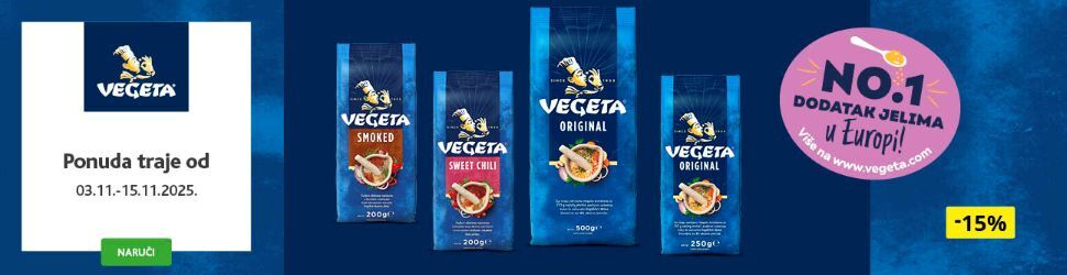 MultiPlusCard Vegeta fino mljevena 200 g MultiPlusCard cijena: 1,59 € Cijena za j.m.: 9,45 €/kg Vrijedi do: 02.11.2025 Cijena 02.05.2025.: 1,89 €/kom (0) 1 89 €/kom kom